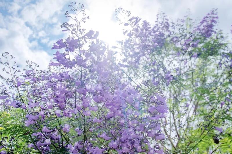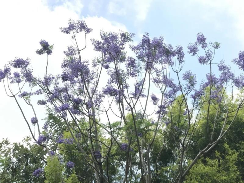 五月天,暑氣漸起。 蟬漸噪,衣愈輕。 綬溪公園,草木正蔥蘢。 一抬頭, 園內(nèi)爛漫花開的藍花楹引入眼簾。